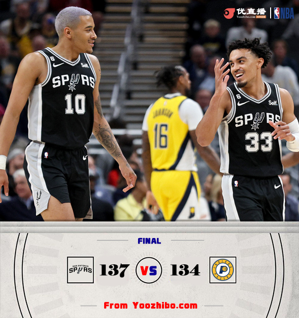 24直播网 10月22日讯 NBA常规赛,马刺客场挑战步行者。马刺夏天出售多名主力,想要文班亚马的心已是路人皆知。步行者这边仍待价而沽,等着湖人拿两个不受保护的首轮签来换希尔德和特纳。本场比赛,马刺自开场以后便全场领先,步行者一度将分差迫近到2分,但马刺持续发力曾将分差拉开到20分以上,步行者奋力再将分差缩小只剩1分,还一度使出砍珀尔特尔的战术犯规,但马刺顶住了对手的反扑,力克步行者。