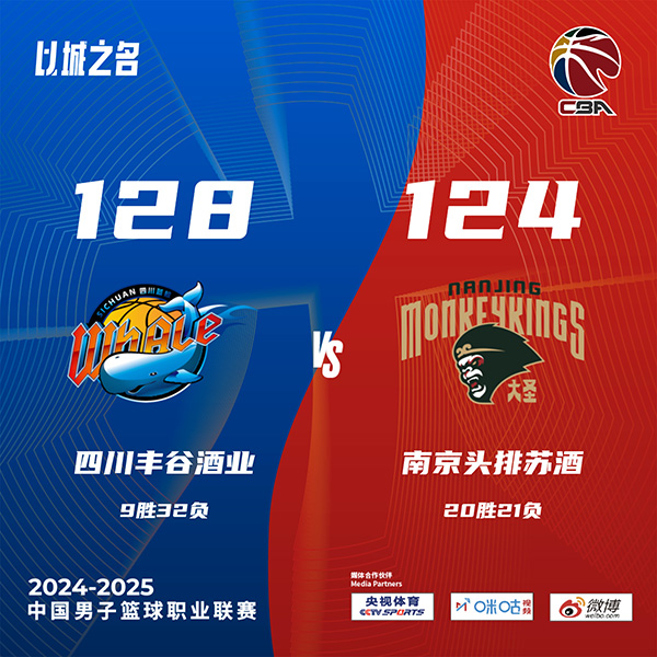 四川:马库斯-亨特38分8板5助,左朕年24分2板,马林-马里奇21分15板8助1断1帽