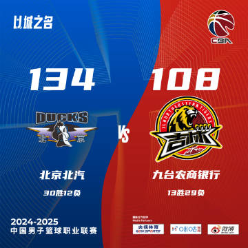 24直播网3月19日讯 CBA常规赛,北京主场迎战吉林,北京9连胜后29胜12负排在第4位,吉林5连败后13胜28负排在第14位。比赛开始,双方都迅速进入状态,纳托尔有攻有传联手周琦撑起进攻,吉林还是琼斯一人苦苦支撑,曾凡博送出空接暴扣,首节北京领先5分,次节北京替补发力轰出10-2直接拉开双位数领先,琼斯继续撑起进攻,基兹林克和鲁吐布拉也能止血,但北京多点开花半场还是领先12分。下半场,双方展开拉锯战,琼斯联手基兹林克带队追分,但周琦内外开花给出回应,杰曼怒喷裁判被驱逐,但三节北京还是领先12分,末节曾凡博开始发力,连续攻击内线单节砍下16分帮助北京扩大到20分以上领先,吉林无力回天,最终北京134-108击退吉林,豪取10连胜同时送对手6连败。