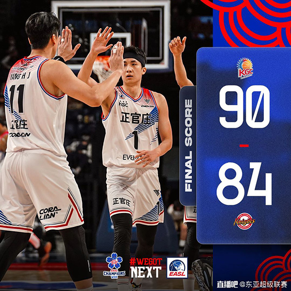 24直播网讯:北京时间3月5日,东亚超级联赛冠军周(简称:东超冠军周)进入最后一个比赛日的争夺,最终,安养KGC以90:84击败首尔SK骑士赢得韩国内战,在获得本次东超冠军周冠军的同时,还将25万美元的冠军奖金揽入怀中。稍早结束的季军战中,来自中国香港特别行政区的湾区翼龙90:70击败了琉球黄金帝王,夺得第三名以及5万美元奖金。
