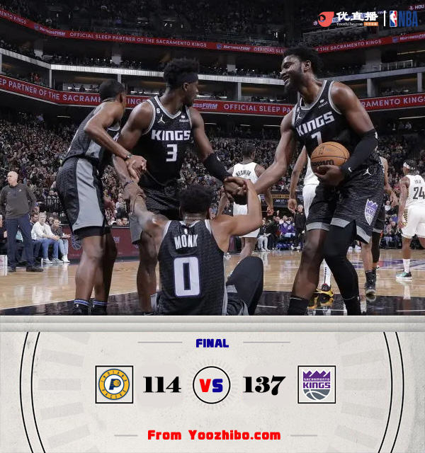 24直播网112月1日讯 NBA常规赛,国王今日迎战步行者,前者三连败后暂列西部第六位,后者上场比赛则是绝杀湖人排名东部第四,此役双方不少球员都是面对旧主。比赛上来,双方短暂拉锯后国王开始发力取得领先,分差也是拉开到了两位数,次节两队展开拉锯,分差并没有发生变化,半场结束时步行者落后14分;下半场双方展开对攻,但国王明显占据了上风,单节狂砍44分将分差继续扩大到二十分以上,之后的比赛步行者没有再获得任何机会,最终国王大胜步行者结束三连败。