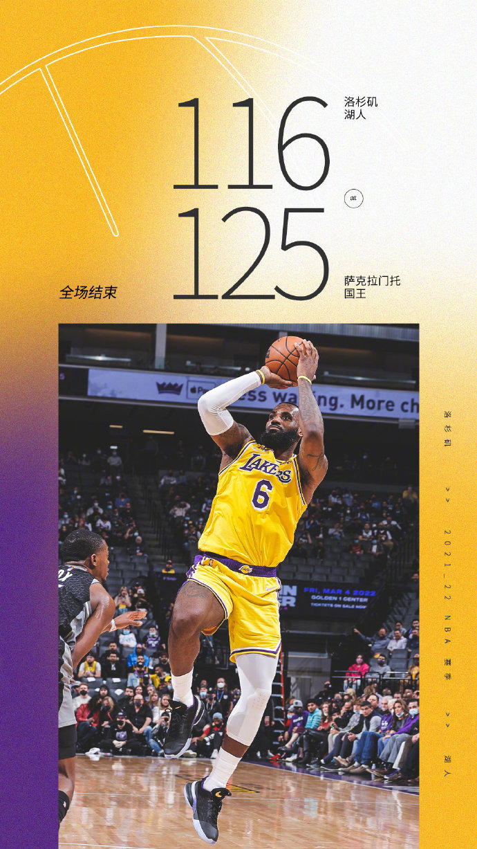24直播网1月13日讯 NBA常规赛继续进行,国王主场迎战湖人,国王此前状态不是很好,一波5连败已经掉落至西部第12位,而湖人4连胜后惨败于灰熊目前也掉落至西部第7位,本场安东尼因腰部紧张缺阵。开局湖人外线手感不错,但国王也是连续冲击内线给出回应,双方打得非常胶着,湖人依靠自身的经验优势,在詹姆斯的带领下占据5分领先,次节国王上来外线手感不错将比分追平,但詹姆斯又站出来里突外投帮助湖人打出超级进攻波一举建立双位数领先,节末国王也回应8-0小高潮将分差又追至6分。第三节风云突变,虽然湖人外线三分还能帮助止血,但国王通过连续冲击湖人孱弱内线,配合着外线巴恩斯的三分,国王打出超级进攻波并单节轰下40分一举建立双位数的领先,末节湖人依靠外线三分紧急追分,但国王也都能给出回应,双方外线对飚,但国王始终保持领先,虽然最后时刻詹姆斯一度帮助湖人追到差2分,但梅图三分一击毙命,最终国王击退湖人,终止自己的5连败。