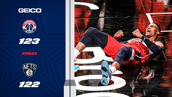 奇才:布拉德利-比尔27分10篮板5助攻,托马斯-布莱恩特21分14篮板,拉塞尔-威斯布鲁克24分10助攻,八村塁15分,贝尔坦斯15分6篮板