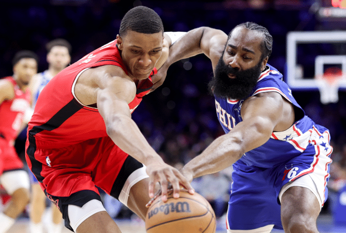 本赛季常规赛,哈登场均拿下21.0分6.1篮板10.1助攻1.2抢断,荣膺助攻王;季后赛场均得到20.3分6.2篮板8.3助攻1.8抢断,季后赛关键时刻拉胯遭质疑,76人再次止步半决赛。