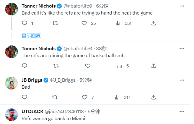 穆雷、约基奇和戈登三大核心都早早领到2犯,其中戈登更是身背3犯,掘金多名主力陷入犯规困扰,而裁判的吹罚又引争议,美球迷炮轰裁判正在毁掉比赛,还有人表示裁判想要把比赛带回迈阿密。