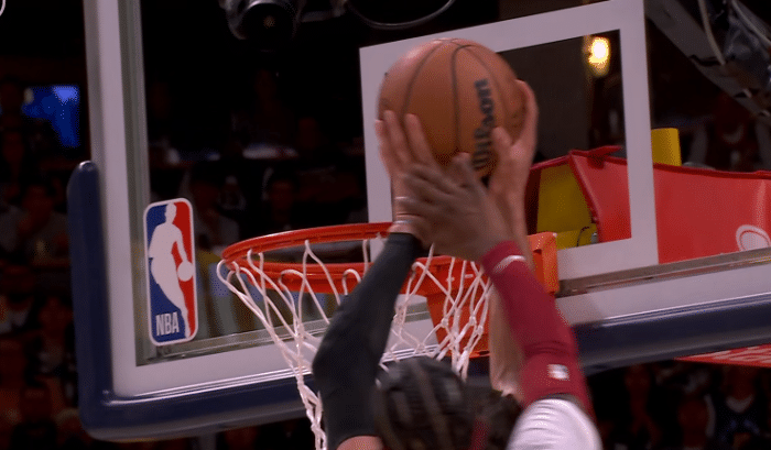 第一节3分多钟,洛瑞一记长传把球甩给斯特鲁斯,后者拿球后欲双手扣篮,波普追防明显打到斯特鲁斯的手,但裁判没有任何吹罚,好在斯特鲁斯这一球最终掉进了篮筐.
