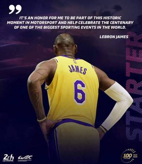 虽然项目不同,但其实在勒芒的比赛和詹姆斯还有一定的关系,他是芬威体育集团的小股东之一,旗下拥有RFK纳斯卡赛车队,拥有特别的勒芒参赛资格。在被宣布担任勒芒24小时耐力赛开幕旗手之后,詹姆斯在公开声明中致谢,同时感到很荣幸,称:“没有比在他们的最高舞台上见证它更棒的经历了,我很荣幸能成为赛车运动这一历史性时刻的一部分。”