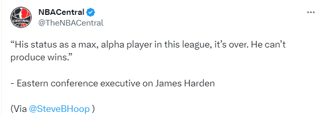 一位东部高管表示:在合适的情况下,我认为他可以成为球队的重要组成部分,他可以为一支优秀的球队做出贡献,但他准备好担任这个角色并获得该角色应有的报酬了吗?詹姆斯想要的是有人以他认为值得的价格付给他报酬,而事实并非如此,哈登作为联盟顶级球星的时代已经结束,他无法带来胜利。