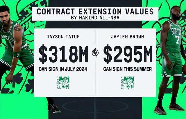 来源:24直播网05-11 15:2624直播网05月11日,NBA官方公布了年度最佳阵容。虽然这份名单争议较大,但绿军双探花杰伦·布朗和塔图姆的入选,都是实至名归。而且,随着两人入选年度最佳阵容,他们都已经具备签下了超级顶薪的资格。布朗在今夏有资格与凯尔特人续签5年2.95亿美元的新合同,而塔图姆有资格在明年夏天和凯尔特人续签5年3.18亿美元的新合同。所以凯尔特人,会给出如此巨额的合同吗?