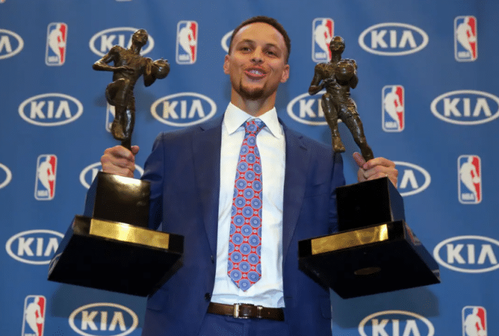 2015-16赛季库里全票夺得常规赛MVP,场均轰进30.1分5.4篮板6.7助攻2.1抢断,场均投进5.1记三分,而本赛季,库里又打出MVP级别的表现,场均投进5.2记三分联盟第一,场均轰下31.6分6.6篮板7.2助攻1.1抢断;除了进攻之外,库里在防守端的表现也更加出色,这就得益于他的增重。
