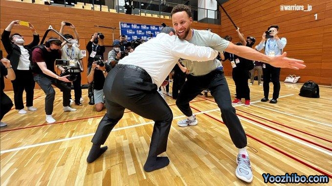 勇士备战东京季前赛,库里和汤普森都体验相扑,使出全力仍推不动专业的相扑选手;勇士备战季前赛欢乐多,库明加举起小女孩扣篮,库里仰望篮筐振臂庆祝;库里教小女孩打球并且为其签名。