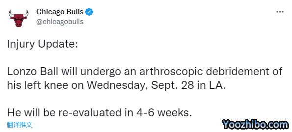今年一月份,郎佐-鲍尔被诊断出左膝骨挫伤和小半月板撕裂,随后接受手术,错过了赛季剩余比赛,当时的预期是鲍尔会完全康复并为22-23赛季做好准备,但如今随着新赛季临近,他的情况仍然很不确定,暂无具体的复出时间表,预计将缺席新赛季初期的一些比赛。