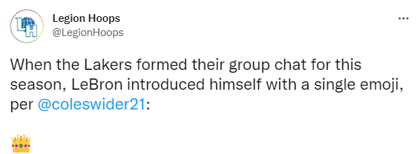 詹姆斯训练营时间地点确定 队友曝詹皇在湖人群自我介绍用皇冠表情