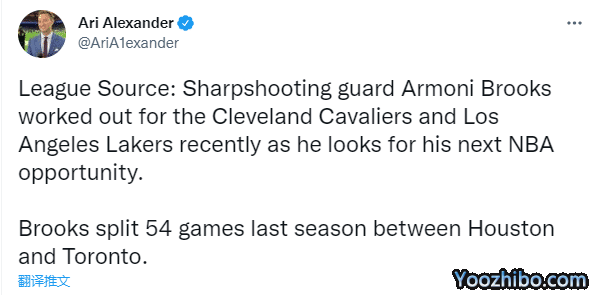 据美记者Ari Alexander报道,近日湖人和骑士试训了阿尔莫尼-布鲁克斯,后者正在寻找下一个在NBA打球的机会。