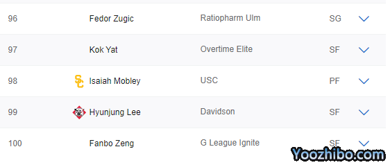 来源:24直播网05-25 16:0424直播网05月25日讯 ESPN官方网站最近更新了TOP100新秀排名,曾凡博差一点没上车,位列第100名。实属正常,毕竟退出了联合试训。