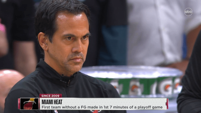 热火成为2009年之后第一支在季后赛前7分钟没有运动战进球的球队,也是成为NBA近25个赛季开局时间最长没有运动战进球的球队(用时8分33秒);热火前8分33秒只得1分,成为近25年季后赛开局得分最少的球队;热火单节11分创造了队史季后赛首节新低。