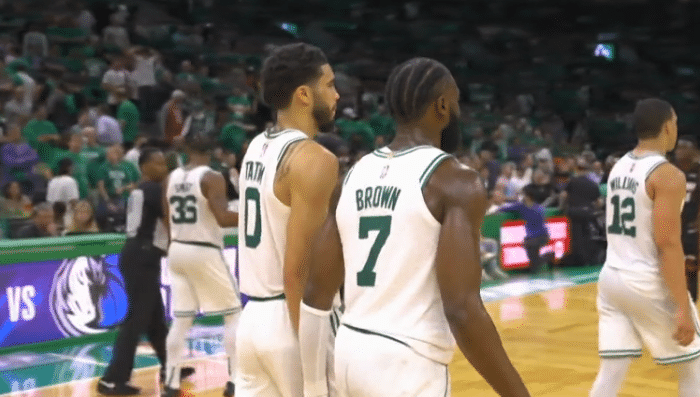 上半场的比赛巴特勒因为膝盖问题退出比赛,随后斯玛特也是遭遇到了伤病打击,他脚部严重扭伤退出比赛,但是经过简单的调整后,斯玛特重新回到了场上,三节打完热火领先15分,末节的比赛开始后,热火进攻陷入停滞,凯尔特轰出一波小高潮缩小比分,塔图姆肩部受伤痛苦倒地,随后返回更衣室接受治疗,布朗三分命中,塔图姆带伤重新回来,一波12:0的小高潮,分差回到了1分。