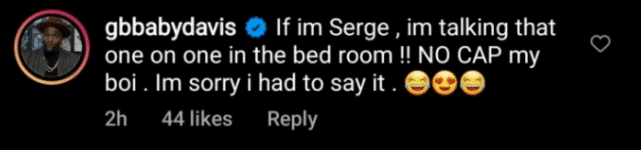 同样是今年3月份,伊巴卡邀请WNBA球星坎贝奇参加美食节目,大宝贝的粗俗评论也引起球迷的反感。坎贝奇当时在社媒晒出合影写道:“我们都喜欢会做菜的男人,谢谢你邀请我参加《你有多饿》节目@伊巴卡!”大宝贝评论道:“如果我是塞尔吉(伊巴卡),我会和她在卧室进行一对一访谈!!对不起,原谅我,但这是事实,我必须要说出来。”