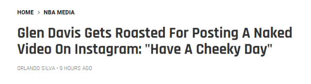 来源:24直播网05-20 14:5424直播网05月20日讯 ,前几天前NBA球员格伦-戴维斯更新IG社媒,晒出了自己早晨裸泳的场面,球迷们纷纷感慨辣眼睛。戴维斯绰号“大宝贝”,现年36岁,不过由于缺乏自律,他在2014-15赛季后就无球可打了,当时他只有29岁。