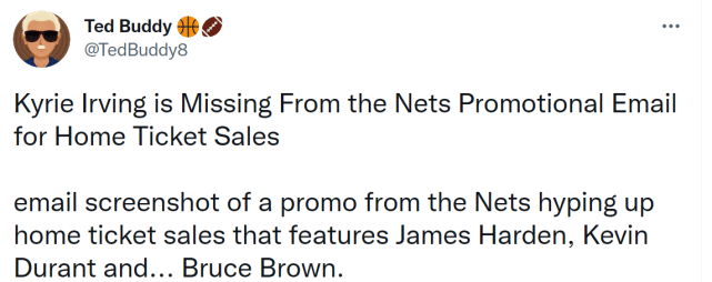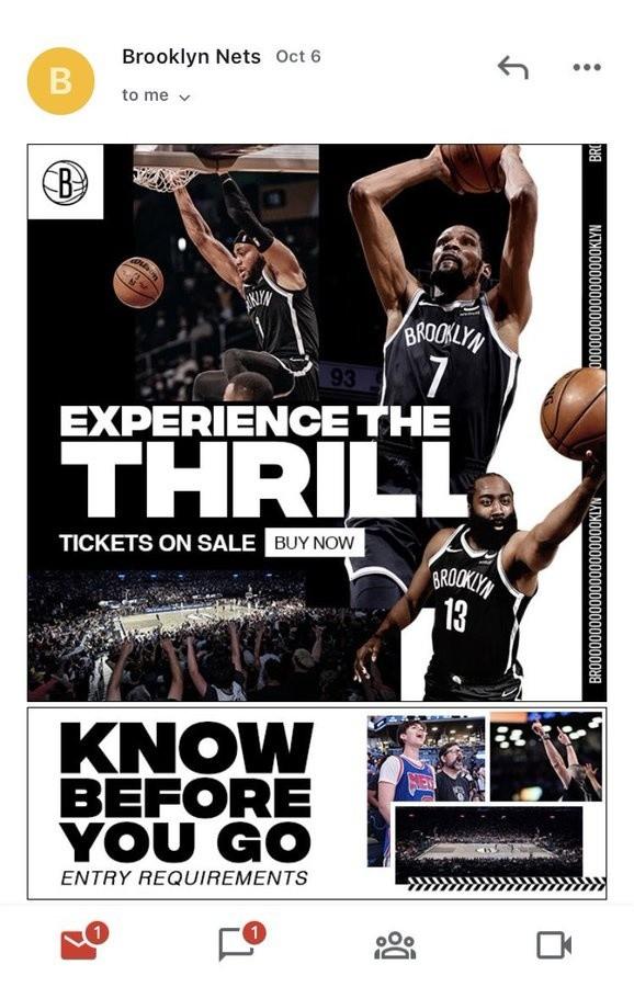 来源:24直播网10-08 16:4824直播网10月08日讯 ,据篮网球迷表示,在他们最新收到的球队邮件中,售票海报上已经没有欧文的照片,上面有三位球员的形象,分别是哈登、杜兰特和布鲁斯-布朗。显然,篮网用布朗顶替了那个原本应该属于欧文的位置。