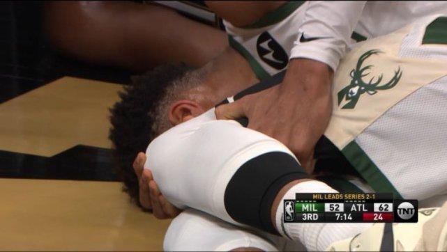 今天比赛里,字母哥在篮下与卡佩拉的拼抢中,落地后膝盖反向弯曲遭遇严重受伤,落地后的他表情痛苦,随后被搀扶出场,最终他退出了本场比赛,此系列赛能否复出还不确定。