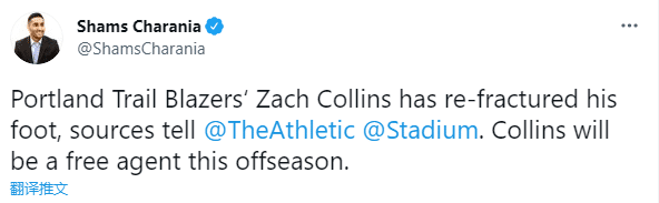 来源:24直播网06-30 14:5024直播网讯 北京时间6月30日,据名记shams报道,开拓者中锋扎克-科林斯再次遭遇脚部骨折,而今年休赛期,他的合同到期将成为自由球员;科林斯接连遭遇骨折,这伤病将影响他的新合同,年仅23岁却沦为玻璃人。