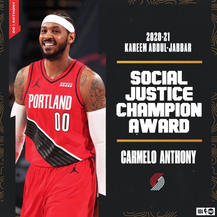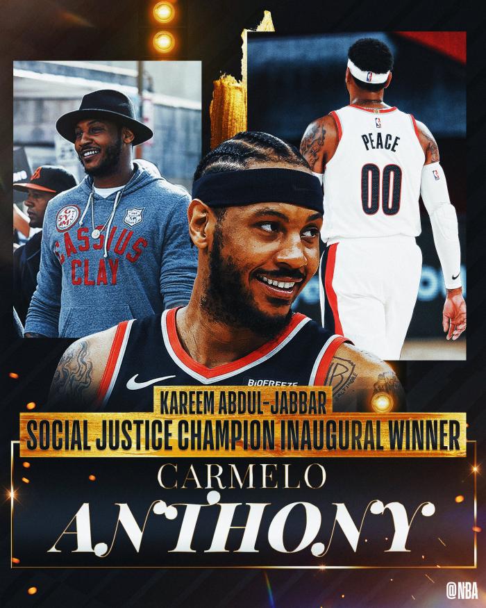 历史第一人!安东尼荣获贾巴尔社会正义冠军奖,发声:比任何奖都重要