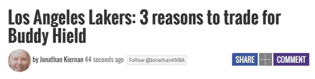 来源:24直播网06-28 14:5824直播网讯北京时间6月28日,美媒LAKESHOWLIFE为湖人休赛期引援支招,他们列出了三条理由,指出湖人应该力争换来国王神射巴迪-希尔德,并给出了一套3换1的交易方案。美媒认为希尔德能够成为詹眉的好搭档,提升湖人的实力,有助于他们在2021-22赛季继续冲击总冠军。
