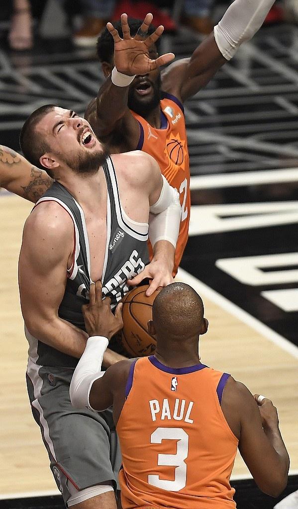 来源:24直播网06-27 15:1724直播网讯太阳4分险胜快船,系列赛3:1取得领先,保罗和布克两位核心仍手感不佳合计44中14,但是艾顿站了出来,全场轰下19分22板4帽,其中9个是前场篮板。