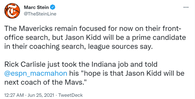 独行侠选帅首要目标曝光!卡莱尔希望基德上任:他和东契奇很相似
