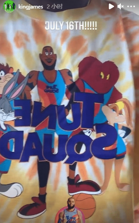就在今天,詹姆斯在社交媒体上转发了一张他身着电影《空中大灌篮2:新传奇》T恤的照片,同时配文:“7月16日!!!”