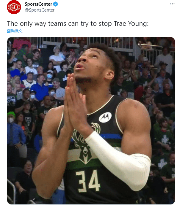 赛后美媒sportsCenter发推调侃:雄鹿只有一种方式能够防守特雷杨——字母哥祈祷上天;言外之意就是说雄鹿防守糟糕,布登霍尔泽该为输球承担责任。