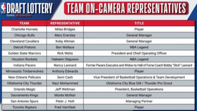 NBA乐透抽签!活塞斩获状元,火箭榜眼,骑士探花,前14顺位落座