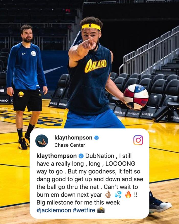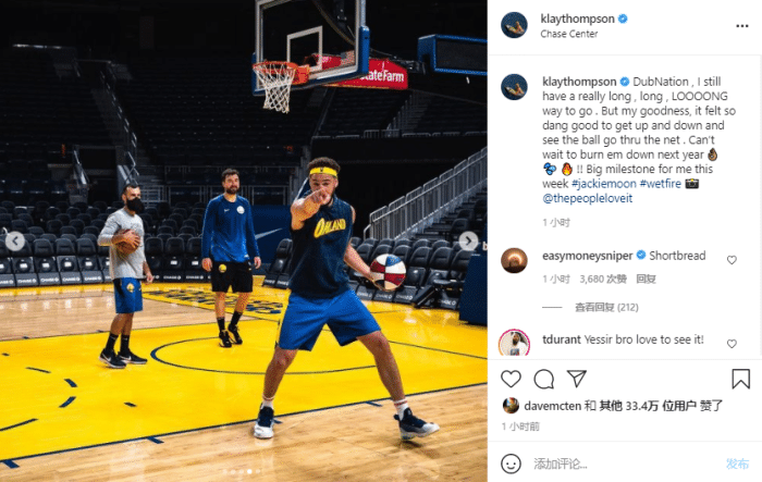 汤普森在Ins上写道:勇士国度,我还有很长很长的路要走。但是天啊,在球场上奔跑并且看着球穿过球网的感觉真是太棒了,等不及明年把他们都烧了!这是我本周(康复)的一个重要里程碑。