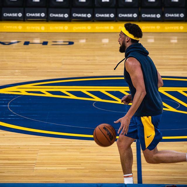 汤普森身穿印有“奥克兰”的勇士训练服,戴着黄色发带,来到勇士球馆进行训练——运球奔跑、中距离跳投和跳投三分,能跑能跳,这说明汤普森的跟腱康复进展很喜人。
