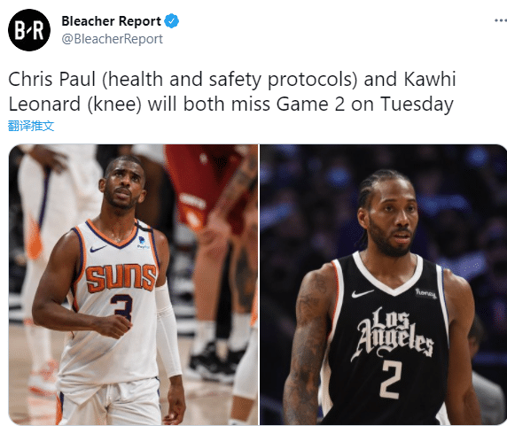 来源:24直播网06-22 11:1724直播网讯 北京时间6月22日,快船和太阳西决G2伤病报告出炉,快船队小卡、伊巴卡缺席比赛,小莫里斯出战成疑;太阳队克里斯-保罗仍旧处于隔离中,继续缺战西决第二战;两队都已官宣,西决G2仍旧是乔治大战布克,小卡和保罗两大领袖都缺战。