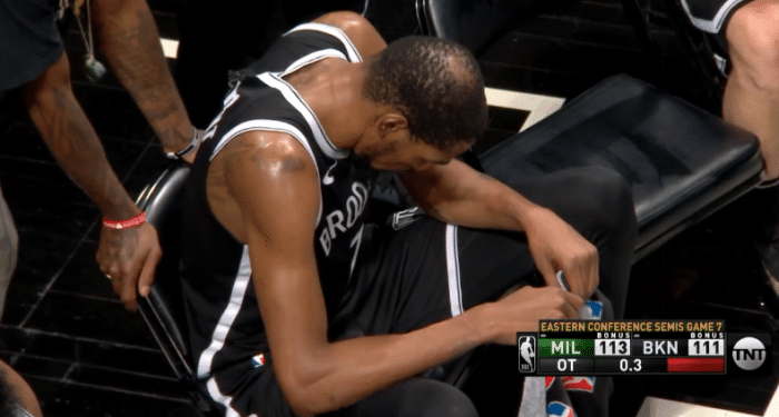 来源:24直播网06-20 15:1324直播网讯 北京时间6月20日,篮网主场加时惜败雄鹿,杜兰特全场打满53分钟轰下48分9篮板6助攻仍遗憾出局,加时赛0分以及关键三分三不沾,死神筋疲力竭真累了;哈登带伤出战同样尽力了,赛后哈登透露自己的真实伤情,并不是腿筋紧张,而是腿筋二级拉伤。