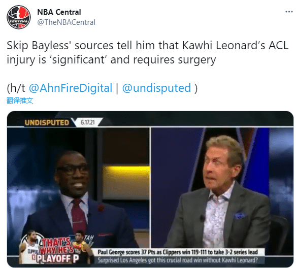 小卡十字韧带伤势真的这么严重吗?若真如名嘴所说,恐怕小卡复出无缘,或因伤赛季报销;此前ESPN名记沃纳罗斯基在节目中透露,小卡不会出战西部半决赛剩下的两场比赛,即使快船最后晋级西部决赛,小卡复出一事也没有存在很大的乐观预期。