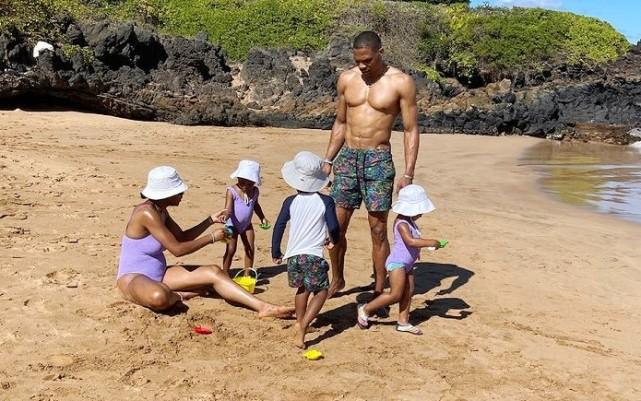 照片上,威少和妻子妮娜在沙滩上陪着三个孩子玩耍。威少穿着沙滩裤,赤膊上阵,露出健硕的胸肌。妻子和三个孩子都戴着帽子,陪伴在威少身旁。一天前,官方揭晓年度最佳阵容,威少无缘上榜,引起不少球迷的吐槽。威少本人曾在社媒上写道:“我一点儿也不惊讶”,疑似回应自己的落选。