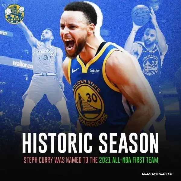 算上这次一阵,他整个职业生涯已经7次入选最佳阵容,超过名宿里克-巴里,独占勇士队史榜首。