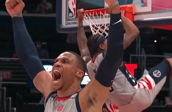 值得一提的是威少本赛季常规赛带领一度长时间处于东部垫底的奇才强势爆发,常规赛尾声阶段连续赢球,最终奇才获得常规赛第八名,附加赛输给凯尔特人之后大胜步行者,杀入到季后赛。威少的数据是22.2分11.5分11.7助攻1.4抢断,不仅赛季场均三双,还成为了NBA历史三双王。同时威少也是本赛季的助攻王,表现抢眼。
