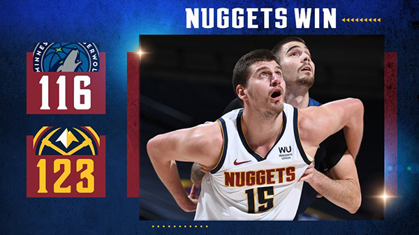 掘金123-116击败森林狼 约基奇35+15 拉塞尔33+11