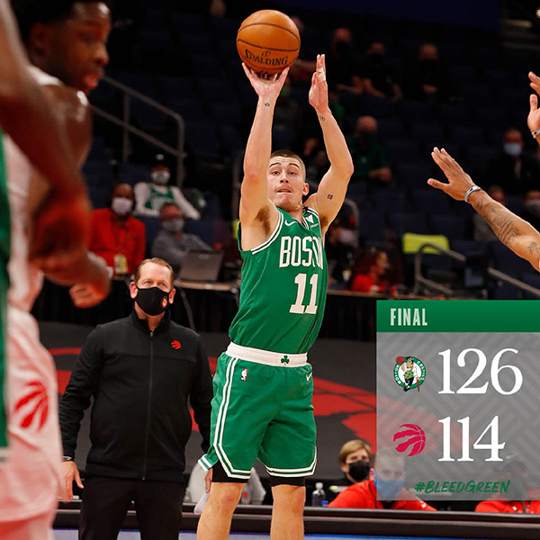 末节,威廉姆斯内外开花,帮助凯尔特人继续扩大领先优势。之后,虽然西亚卡姆与阿奴诺比接连砍分,帮助猛龙队止血。但是威廉姆斯也连续回应,两队分差一直保持在20分以上。到了本节中段,洛瑞打成2+1,随后绿军出现失误,西亚卡姆再得手,帮助猛龙将分差缩小至19分,凯尔特人随后直接叫了一次暂停。暂停回来后,奥杰莱彪中三分,帮助凯尔特人队稳住局势。而后,两队重回拉锯战,分差一直保持在20分左右。到了本节后半段,渡边雄太与戴维斯连砍9分,将分差直接缩近至10分。随后,凯尔特人换回首发阵容。之后,普里查德在外线造成猛龙队犯规,通过罚球帮助绿军稳住局势。最终,凯尔特人队以126-114战胜猛龙队。