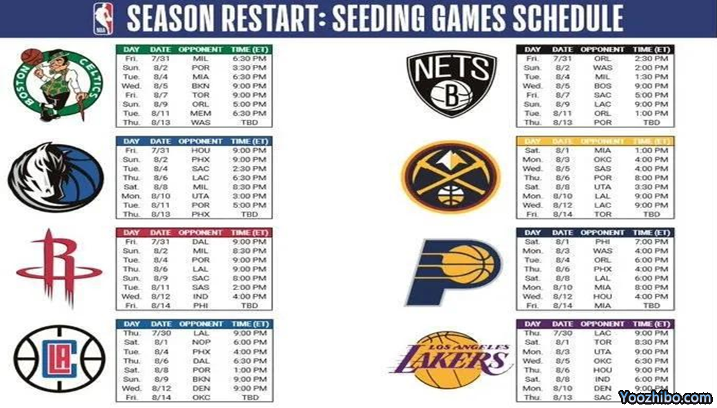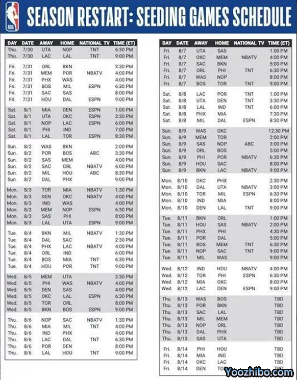 NBA复赛详细赛程如下(以下均为北京时间):