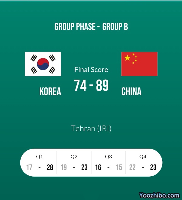 单节比分:17-28、19-23、16-15、22-3-23(中国男篮在后)。
