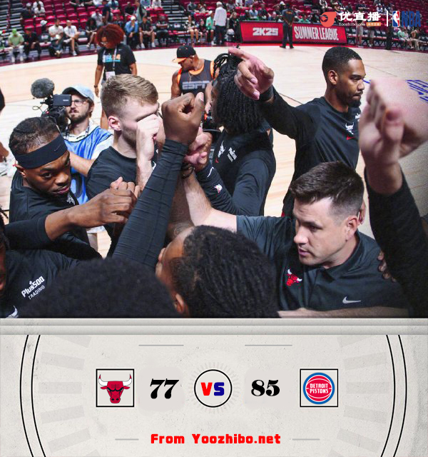 24直播网讯 7月16日 NBA夏季联赛,活塞主场迎战公牛,公牛在选秀大会上主要摘得11号秀布泽利斯,而活塞则是选中5号秀霍兰、37号秀克林特曼。比赛开始,公牛上来打出8-2不错开局,霍兰扣篮加三分止血,但布泽利斯接连暴扣帮助公牛很快领先到双位数,双方对攻首节公牛领先14分,次节活塞6-0紧急追分,但公牛里突外投迅速回应7-0,萨瑟接连冲击内线加上三分继续追至个位数分差,半场活塞只落后6分。下半场,萨瑟上来连进2记三分一度帮助活塞追平比分,公牛4名球员各自扔进三分迅速止血并重新拉开双位数领先,好在活塞马上小高潮回应,麦考伊压哨三分重新追到差2分,末节活塞上来又是打出9-0直接反超比分,打了3分多钟菲利普斯上篮2+1终于止颓,但霍兰接连反击还是帮助活塞重新领先9分,最终活塞85-77逆转公牛。