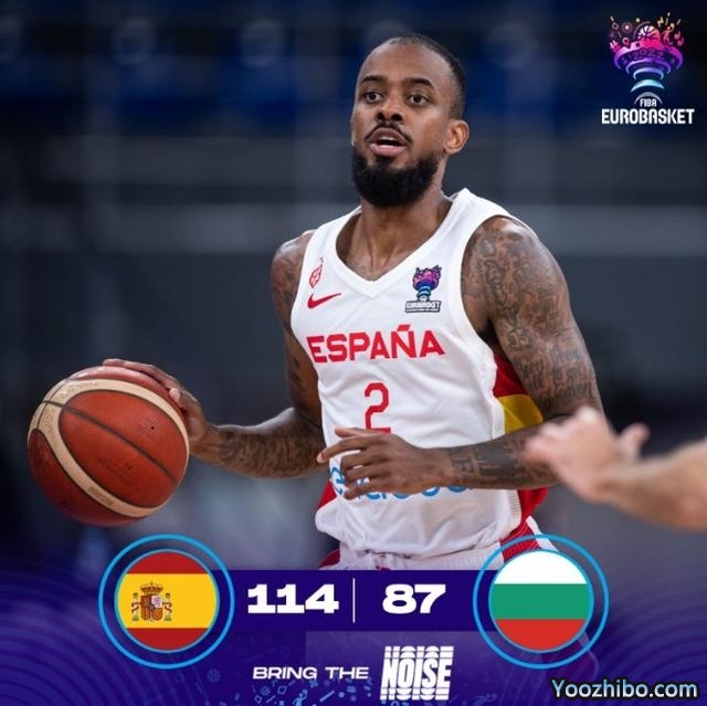 24直播网讯:北京时间9月1日,2022年男篮欧洲杯小组赛揭幕战,世界第2名的西班牙男篮对决保加利亚男篮。西班牙男篮实力碾压上半场已经领先22分,下半场继续巩固优势提前奠定胜局,最终西班牙男篮114-87轻松战胜保加利亚男篮取得开门红。