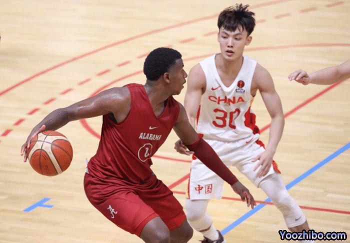 24直播网讯 北京时间8月13日凌晨1:30,男篮迎战NCAA大学队阿拉巴马大学,最终77-89告负,根据现场流出的画面,本场周琦未出战。这场是男篮抵达法国后的首场热身,本场比赛,中国男篮开局0-7落后。随后打了一个17-4,首节21-20领先。