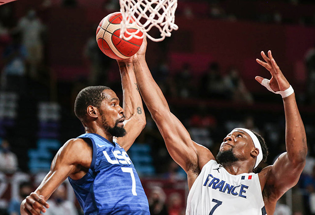 24直播网7月25日讯 东京奥运会男篮小组赛A组首轮,美国男篮对阵法国男篮,法国男篮阵中有戈贝尔为首的诸多NBA球员,实力不容小觑;美国男篮热身赛状态一般,但作为卫冕冠军的他们还是十分有信心。开局法国队在富尼耶带领下打得很主动,但随后进攻乏力,而美国队在杜兰特和阿德巴约带领下内外开花很快打出一波小高潮领先到7分,次节法国还是依靠内线高度连续追分,但美国又依靠外线射手群们连续发炮重新稳住8分的领先优势。易边再战,富尼耶成为法国领袖,他里突外投连续砍分帮助法国紧咬比分,美国又陷入得分荒,德科洛的连续外线帮助法国反超了6分,末节法国陷入得分荒给美国机会,霍勒迪凭一己之力连砍10分将比分反超回来,随后阿德巴约关键罚球不进加传球失误让富尼耶抓住机会扔进三分重新反超回来,德科洛两罚基本杀死比赛,最终法国逆转险胜美国,拿到小组赛首场胜利。