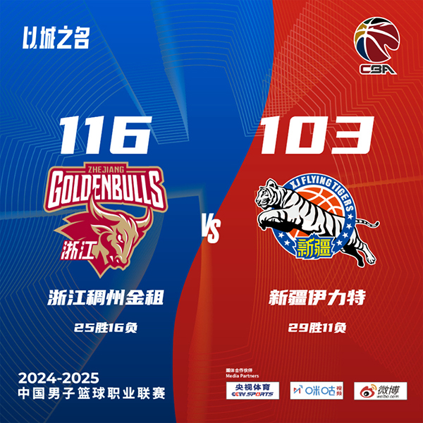 24直播网讯北京时间3月18日讯 CBA常规赛,浙江主场迎战新疆。浙江2连败后25胜16负排在第9位,新疆则是3连胜后29胜11负排在第4位。新疆新外援哈雷尔此前签约时曾与浙江有过纠纷,本场话题度拉满。比赛开始,双方上来都比较慢热,哈雷尔接连内线强攻打成,琼斯和约克也联手撑起浙江进攻端,琼斯接连内线强打造杀伤,首节浙江领先11分,次节李炎哲连续内线吃饼助分,王奕博接连中远投给出回应,赵睿里突外投连砍10分止血,但约克连砍12分强势回应并带队拉开20分领先。下半场,新疆上来轰出16-4攻击波直接追至个位数分差,约克三分加程帅澎突破回应8-0稳住局势,琼斯三分再进,三节浙江还领先17分,末节浙江上来再次拉开20分以上领先,赵睿和齐麟接连助队追分,但浙江总能回应保持住十几分领先,最终浙江116-103力克新疆,终结对手3连胜。